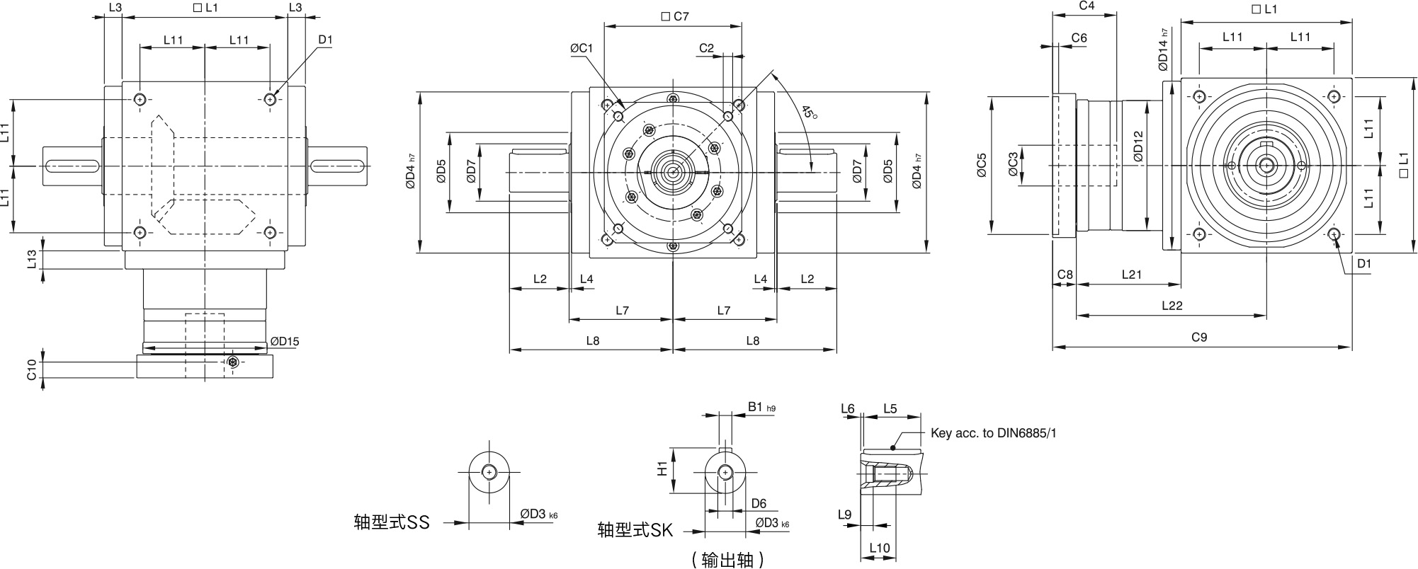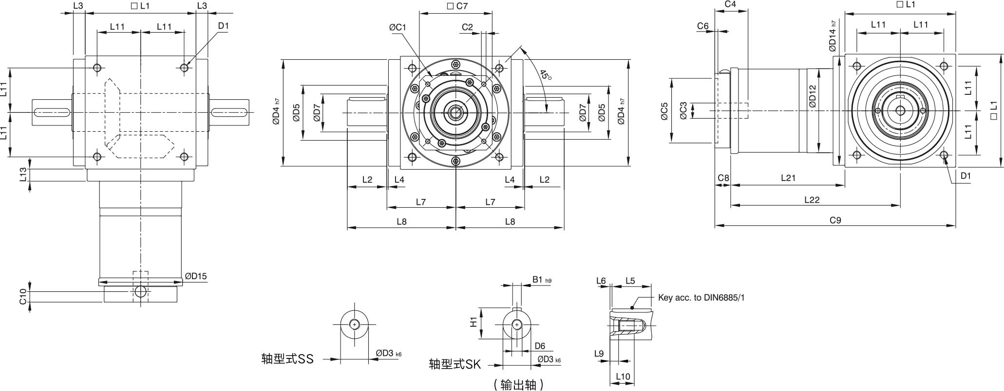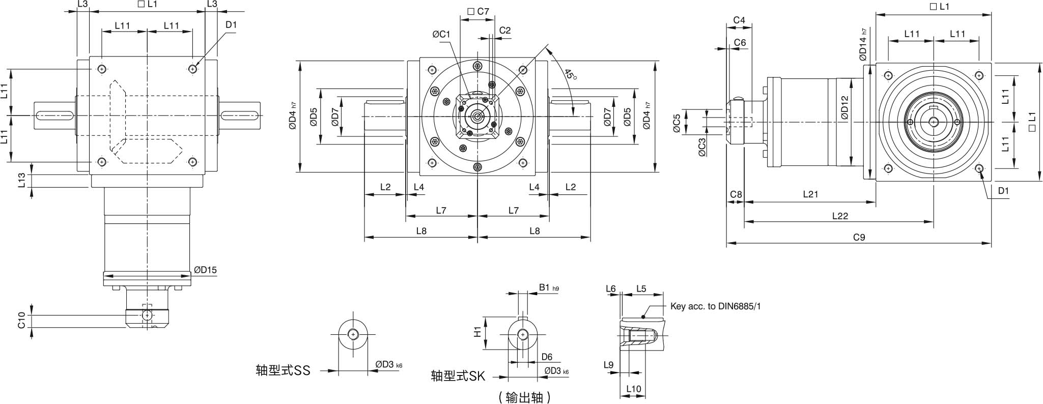 | Allowable Axial Force(输出轴) | L1~L3 | N | 450 | 550 | 850 | 1350 | 2400 | 3300 | 5750 | 8500 | 9000 |