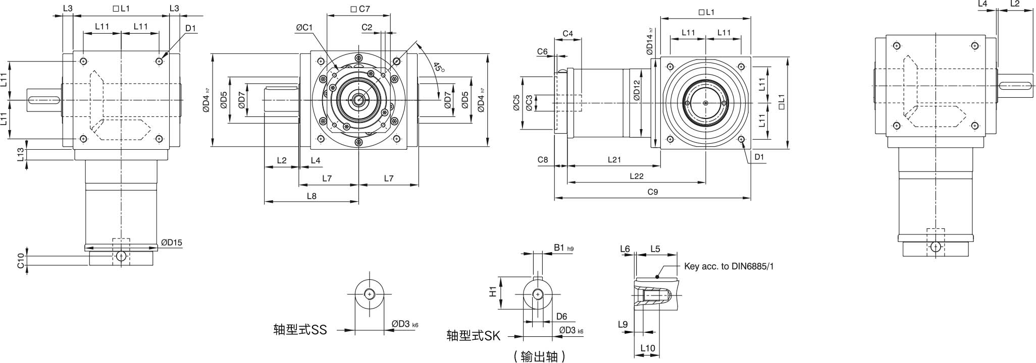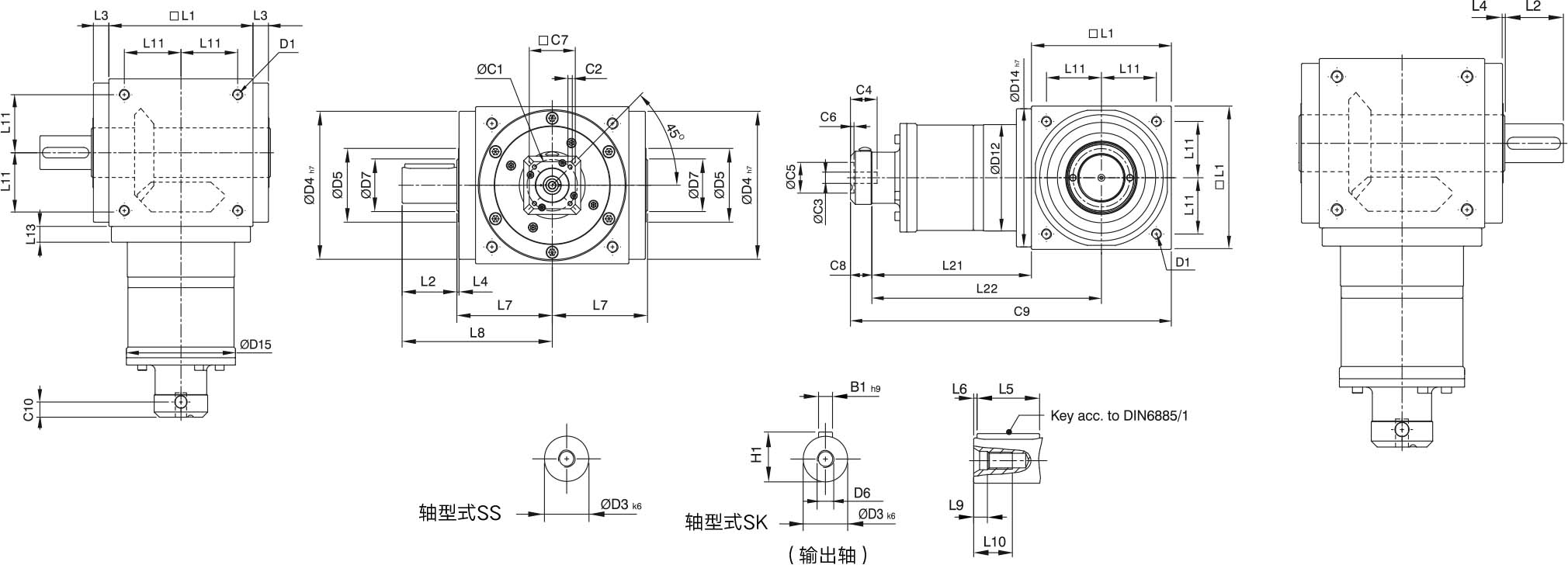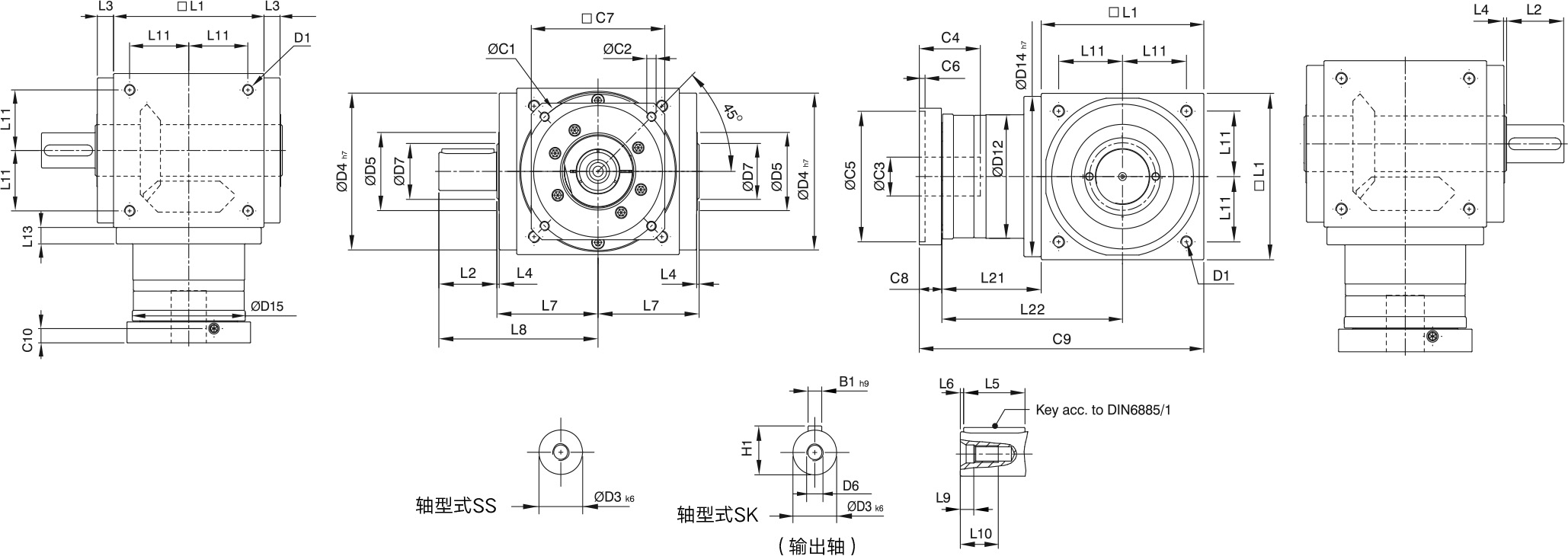 | Allowable Axial Force(输出轴) | L1~L3 | N | 450 | 550 | 850 | 1350 | 2400 | 3300 | 5750 | 8500 | 9000 |