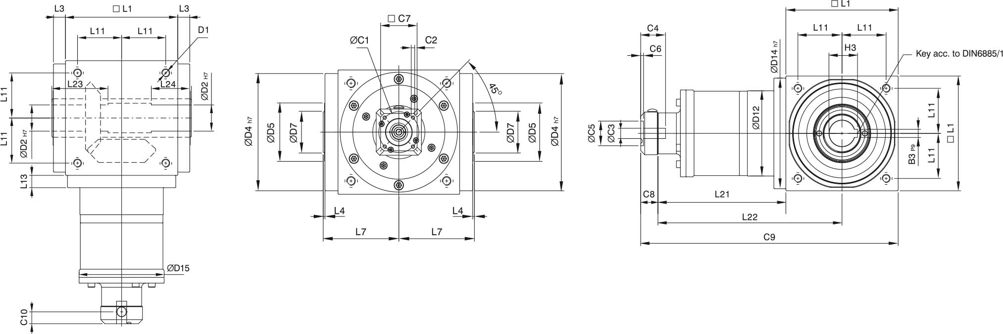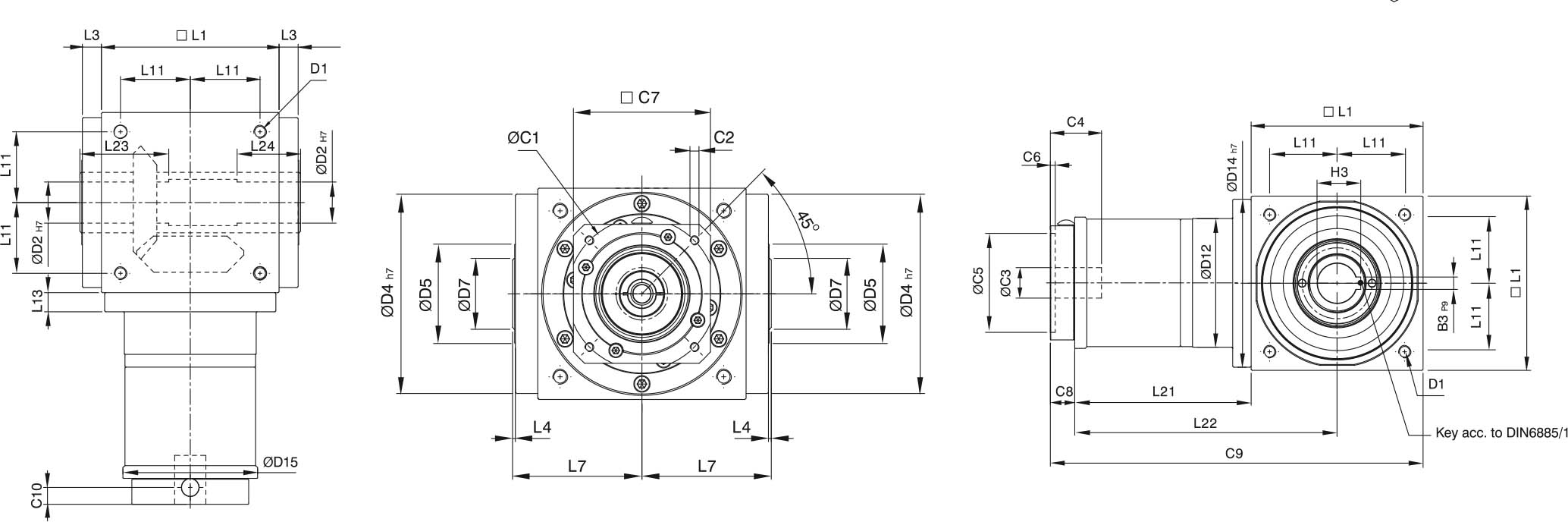 | Rated Output TorqueNm | L1 | 1 | 25 | 45 | 78 | 150 | 360 | 585 | 1300 | 2150 | 3200 |